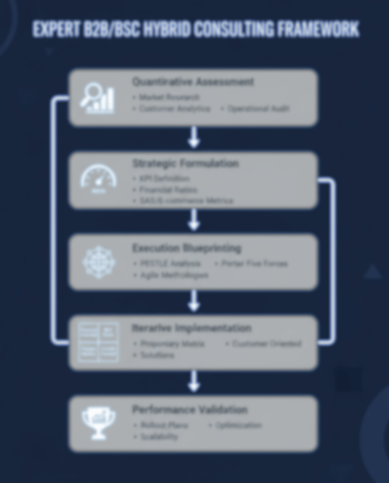 Our methodology is a structured, research-backed framework derived from proprietary tools and industry benchmarks (e.g., McKinsey's growth models and Gartner's digital transformation indices). Each step incorporates quantitative analysis and iterative validation for optimal outcomes in B2B , B2C , and hybrid (omnichannel) models